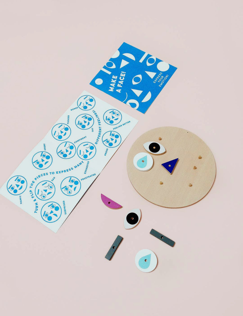 How are you feeling? A beautiful wooden play set with a face shaped base and 8 facial parts to convey lots of emotions. From happy to sad, sleepy to excited! Encourages social and emotional play.
