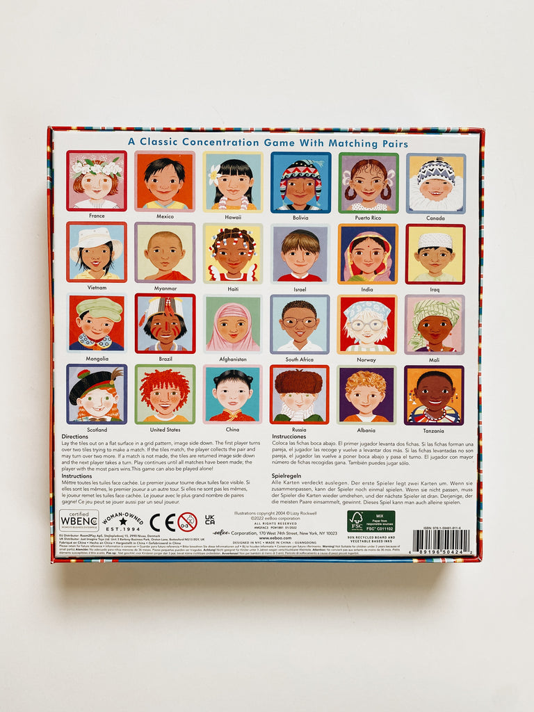 A fun memory game that Introduces diversity, gaining positive familiarity with people from other countries and cultures, celebrating differences while developing patience and memory skills.